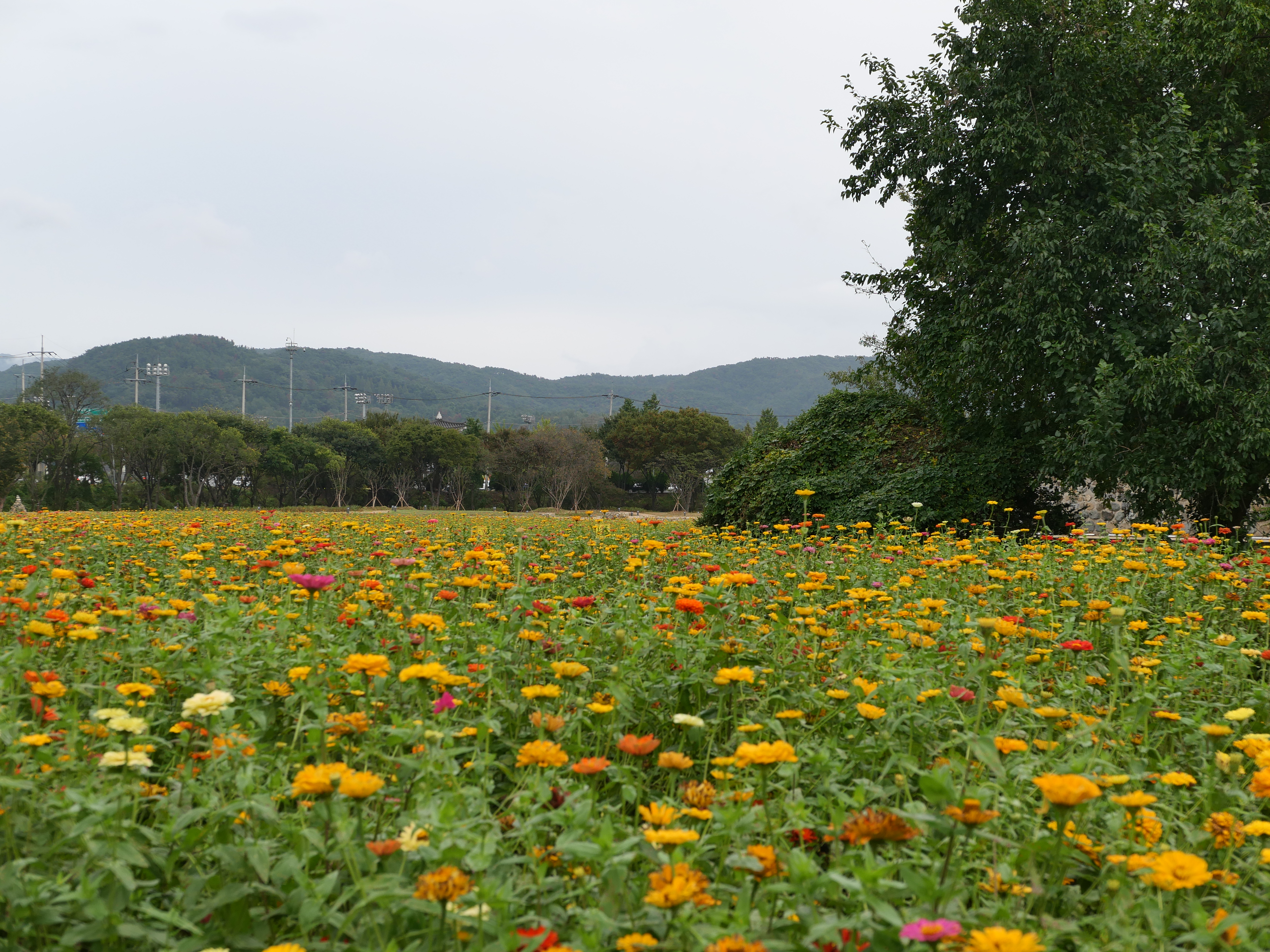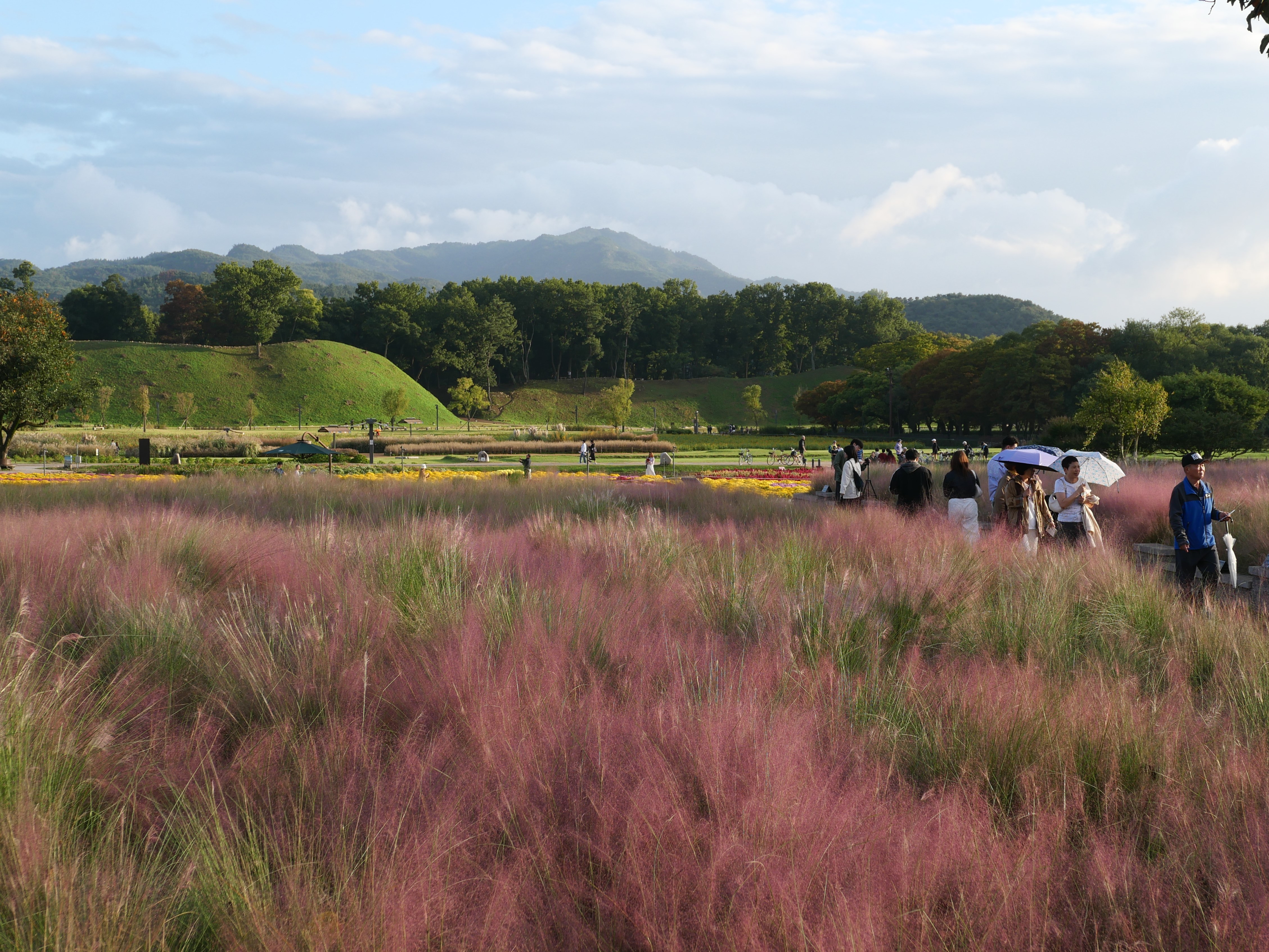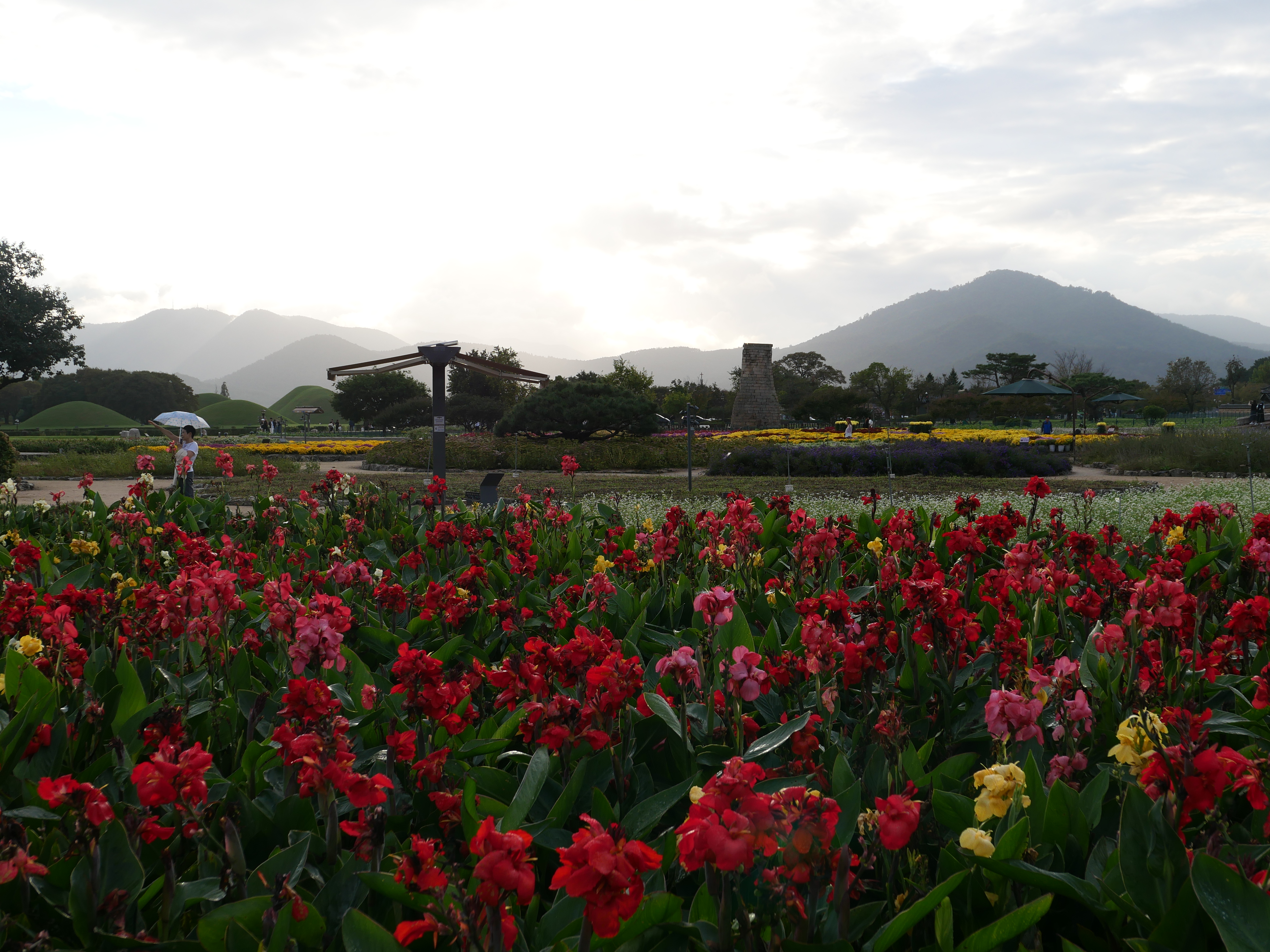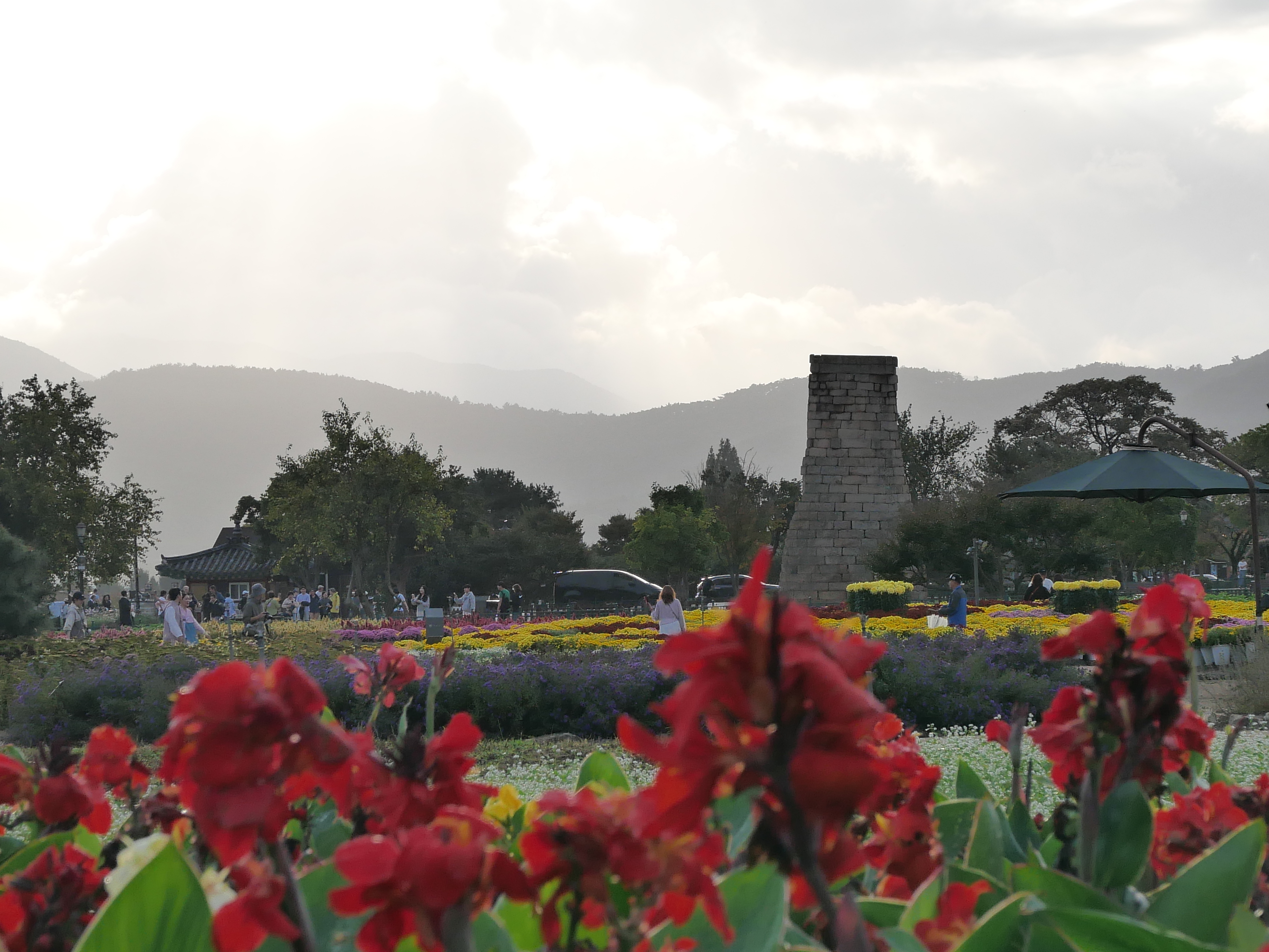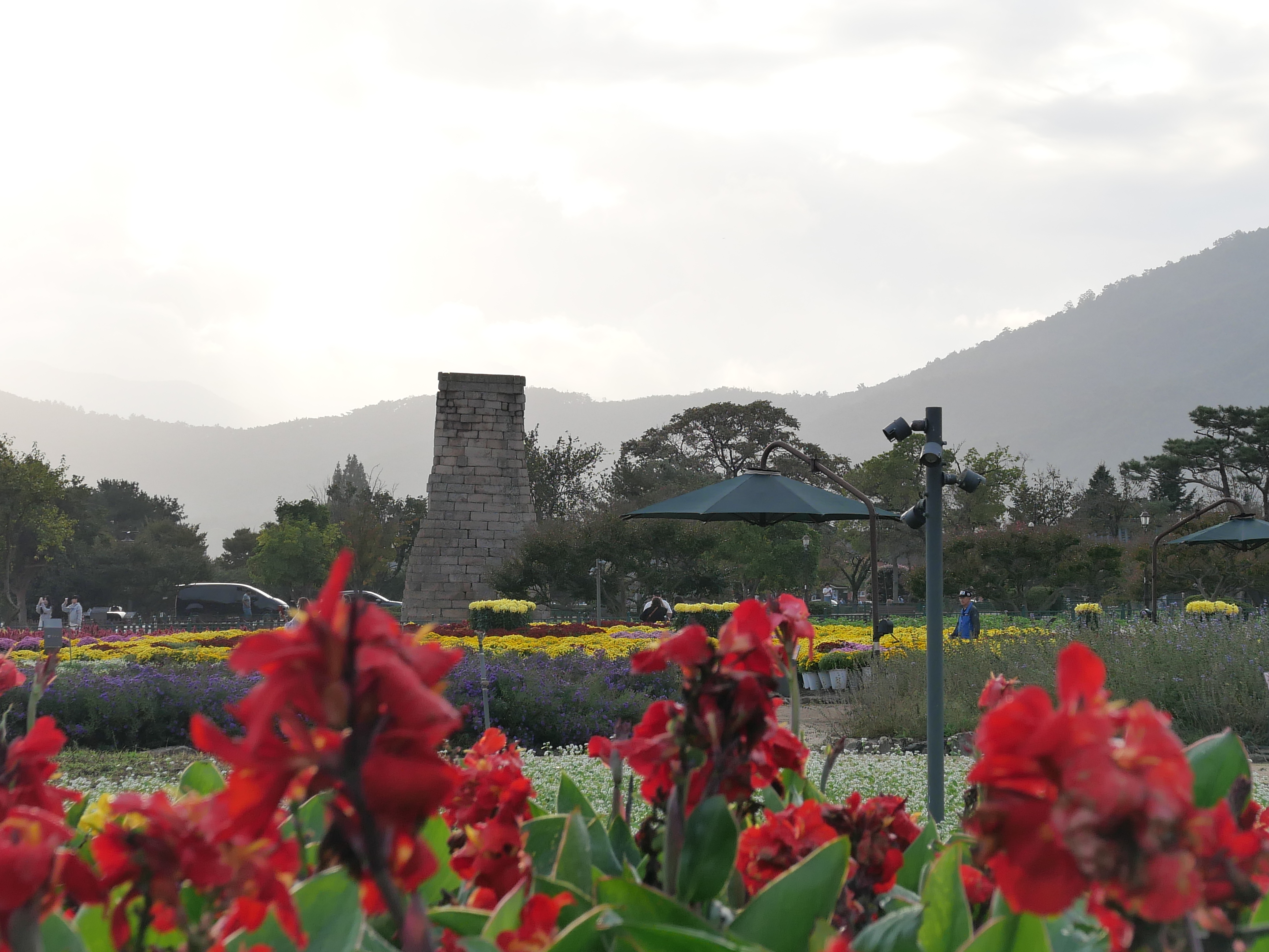 그밖에도 핑크뮬리와 해국,칸나 등등 이름을 모르는 꽃들도 피어 있어 가을 분위기가 물씬 났다