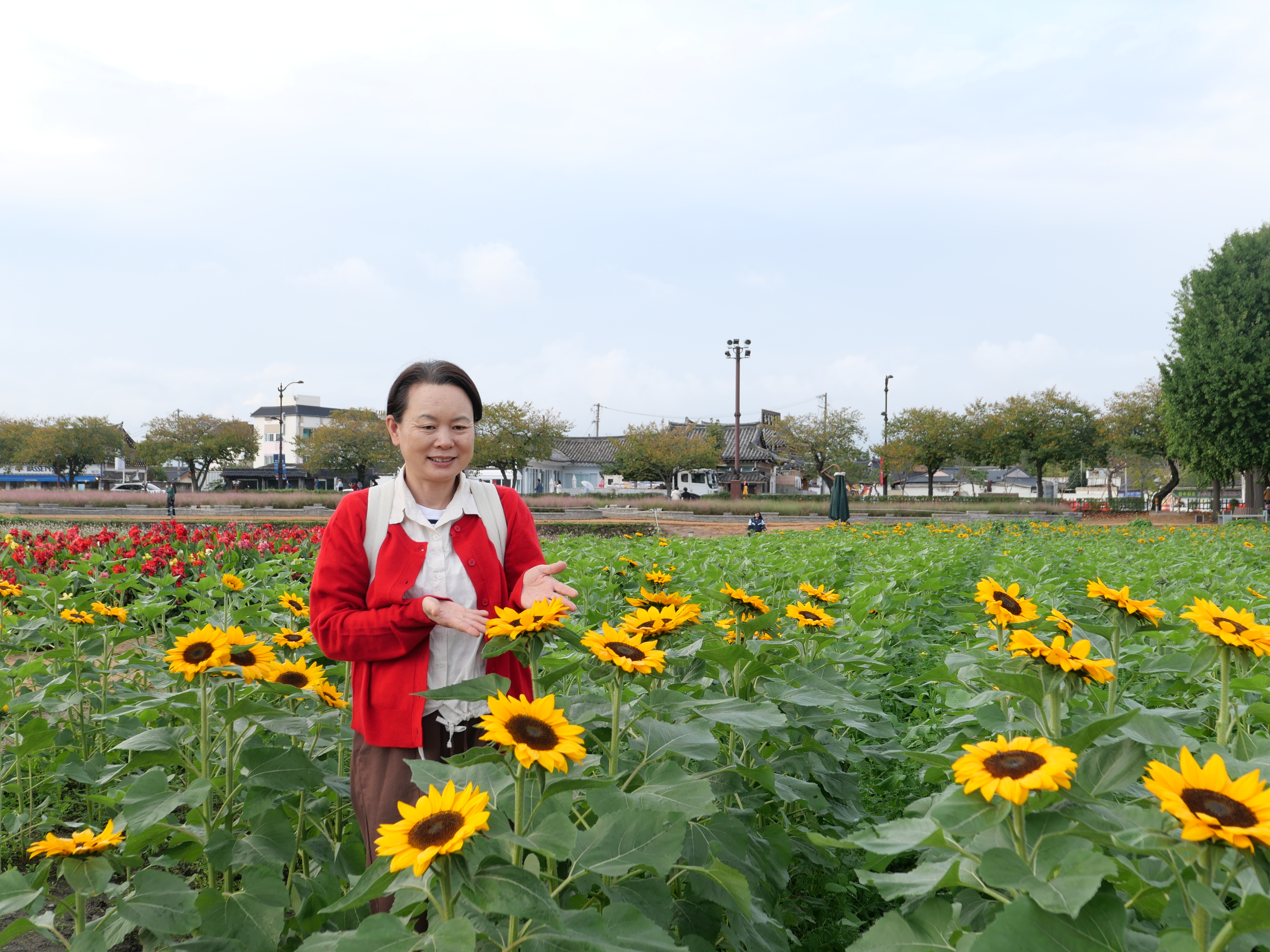 국화는 지금 절정기였고 해바라기는 이제 막 피기 시작 단계라