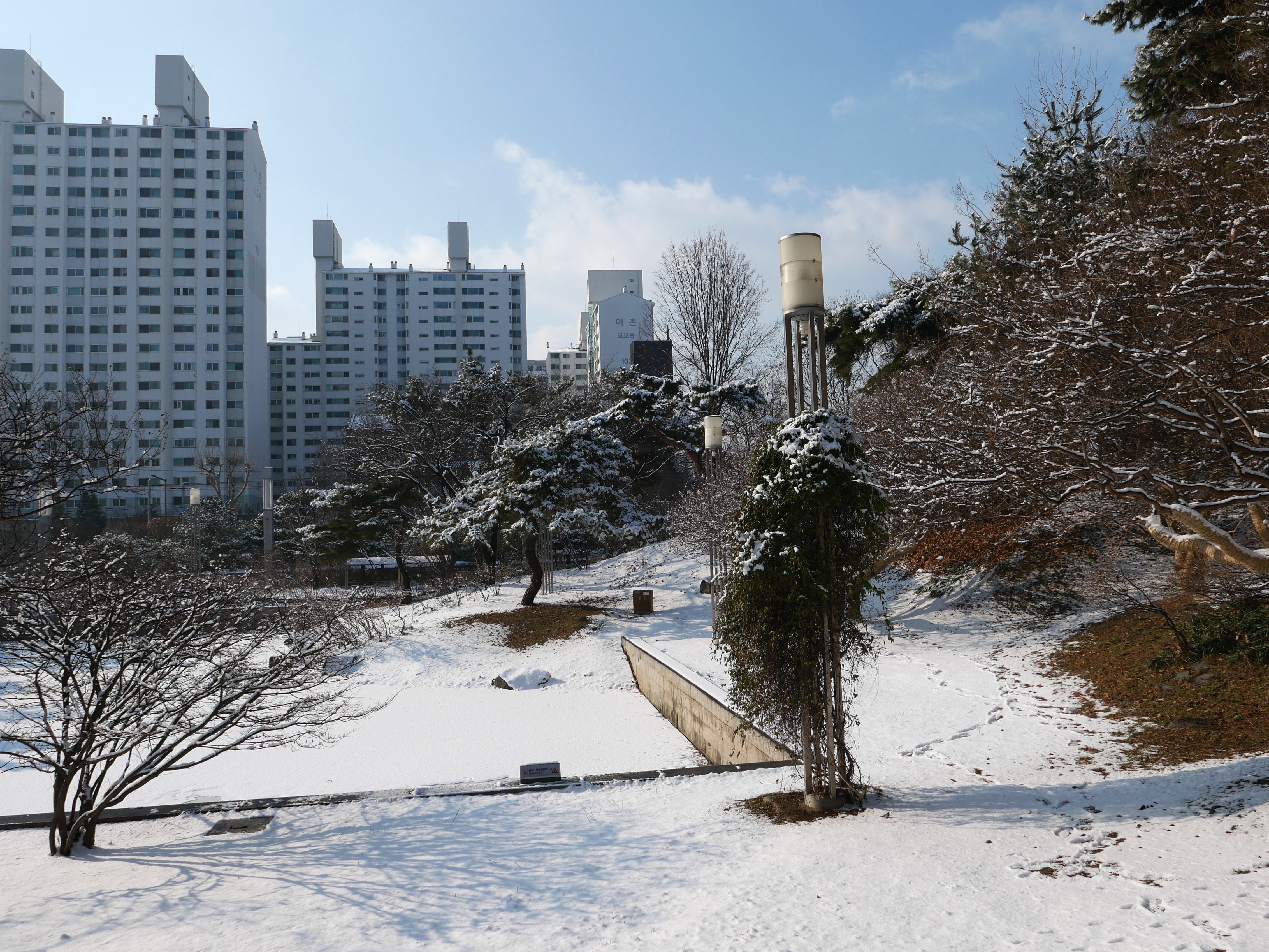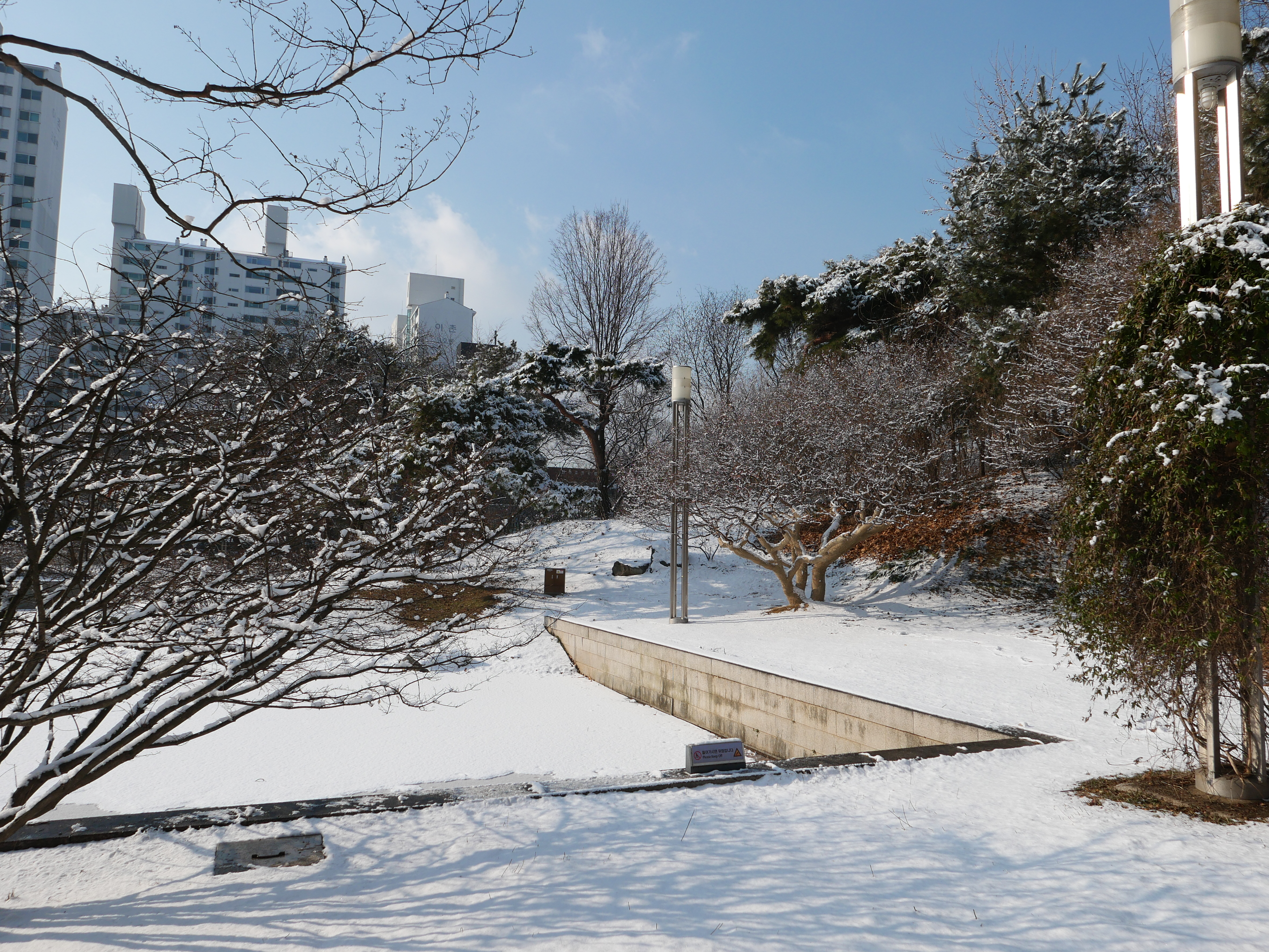 아침에 밖을 보니 눈이 제법 내려서