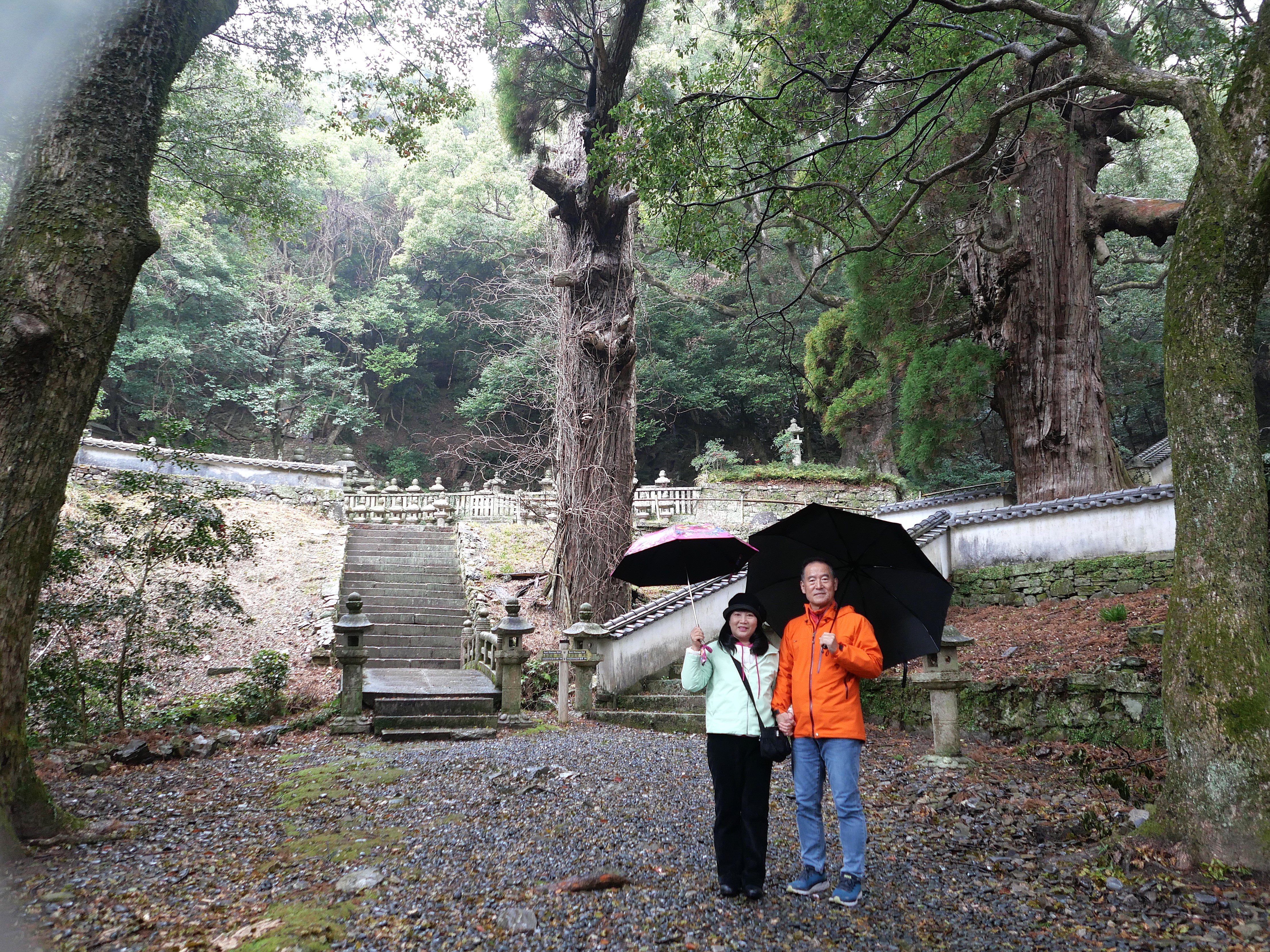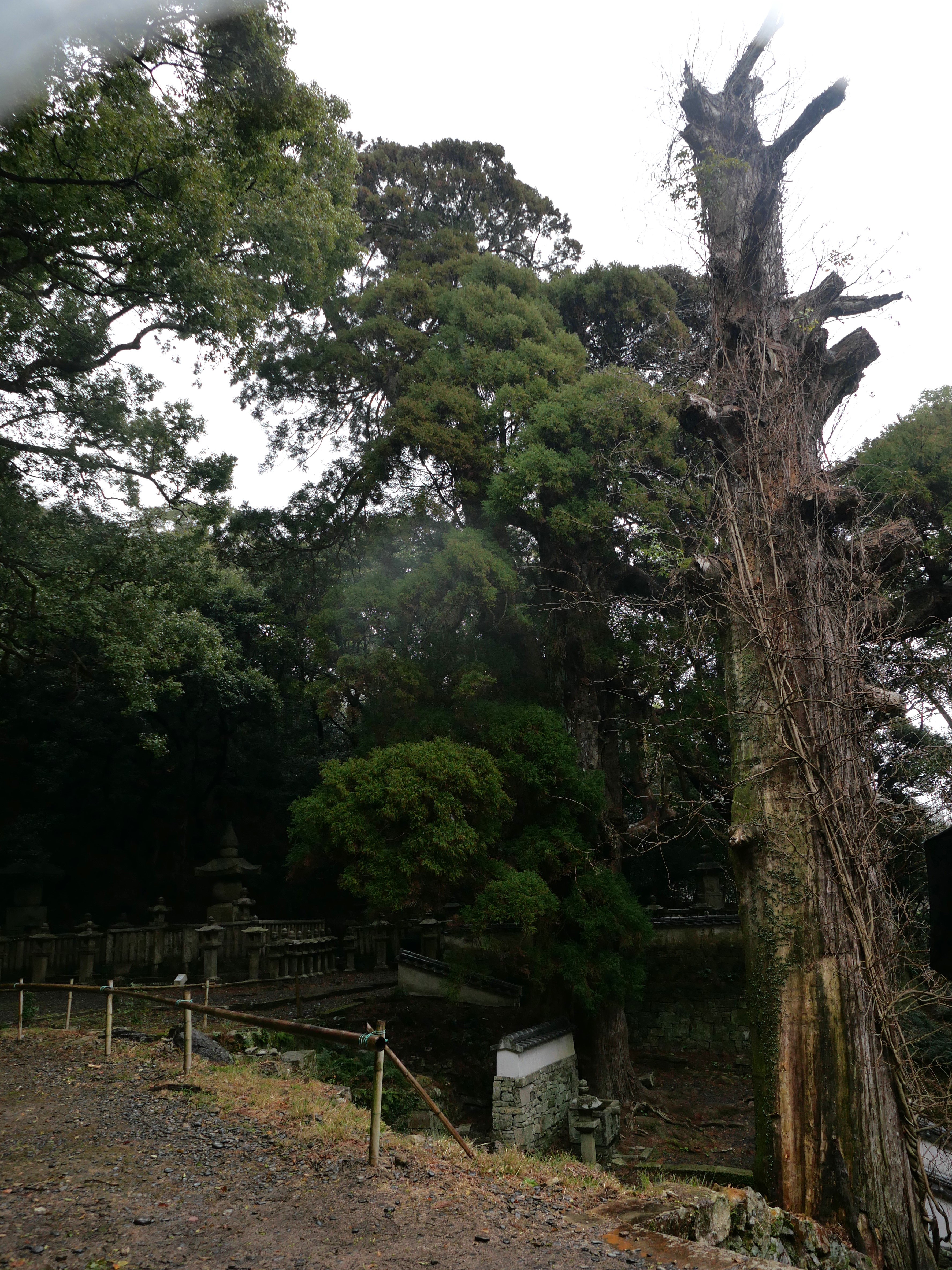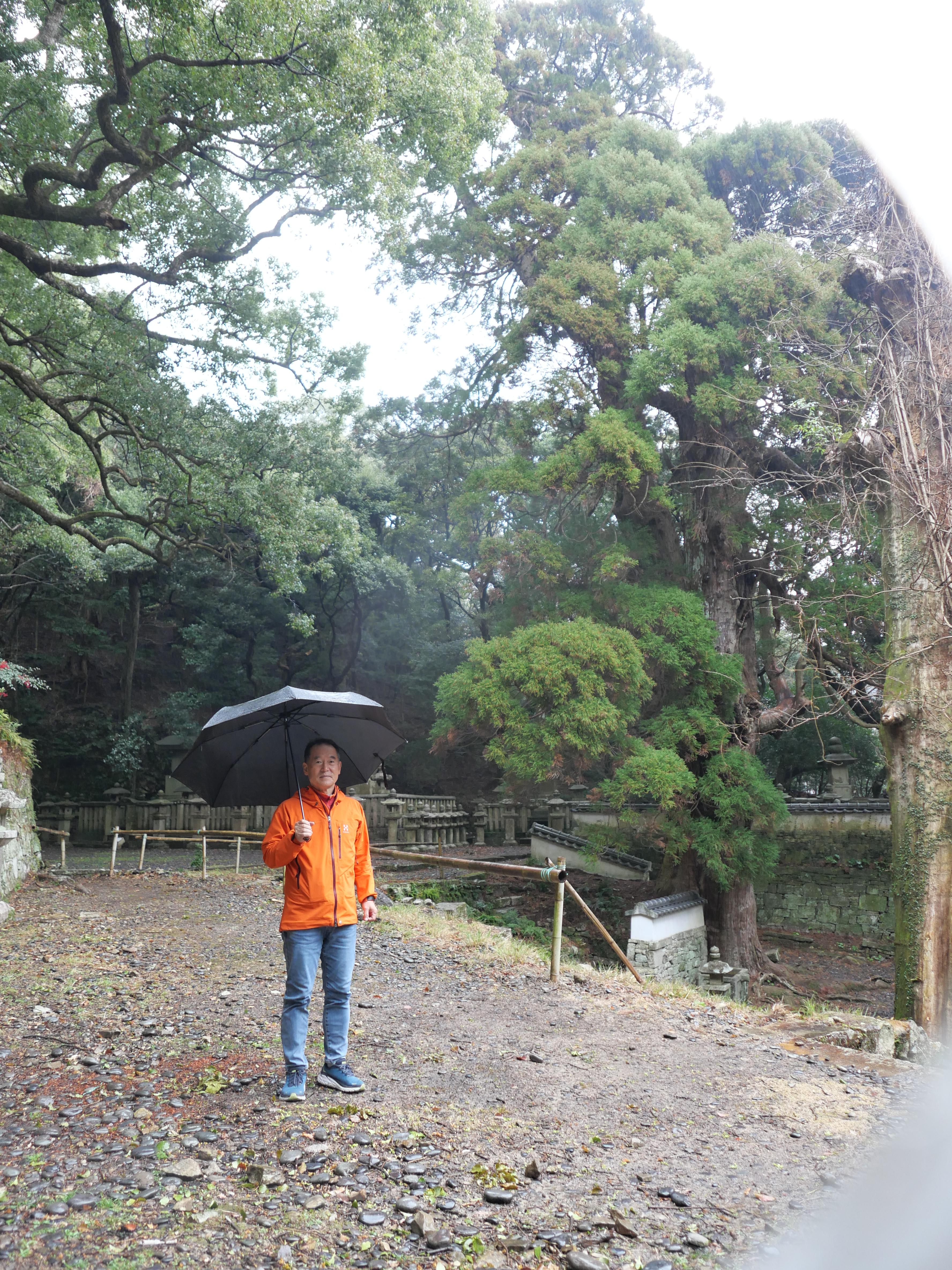 가문의 묘원으로 132개의 돌계단과 400년 넘은 삼나무 세그루가 볼만하다