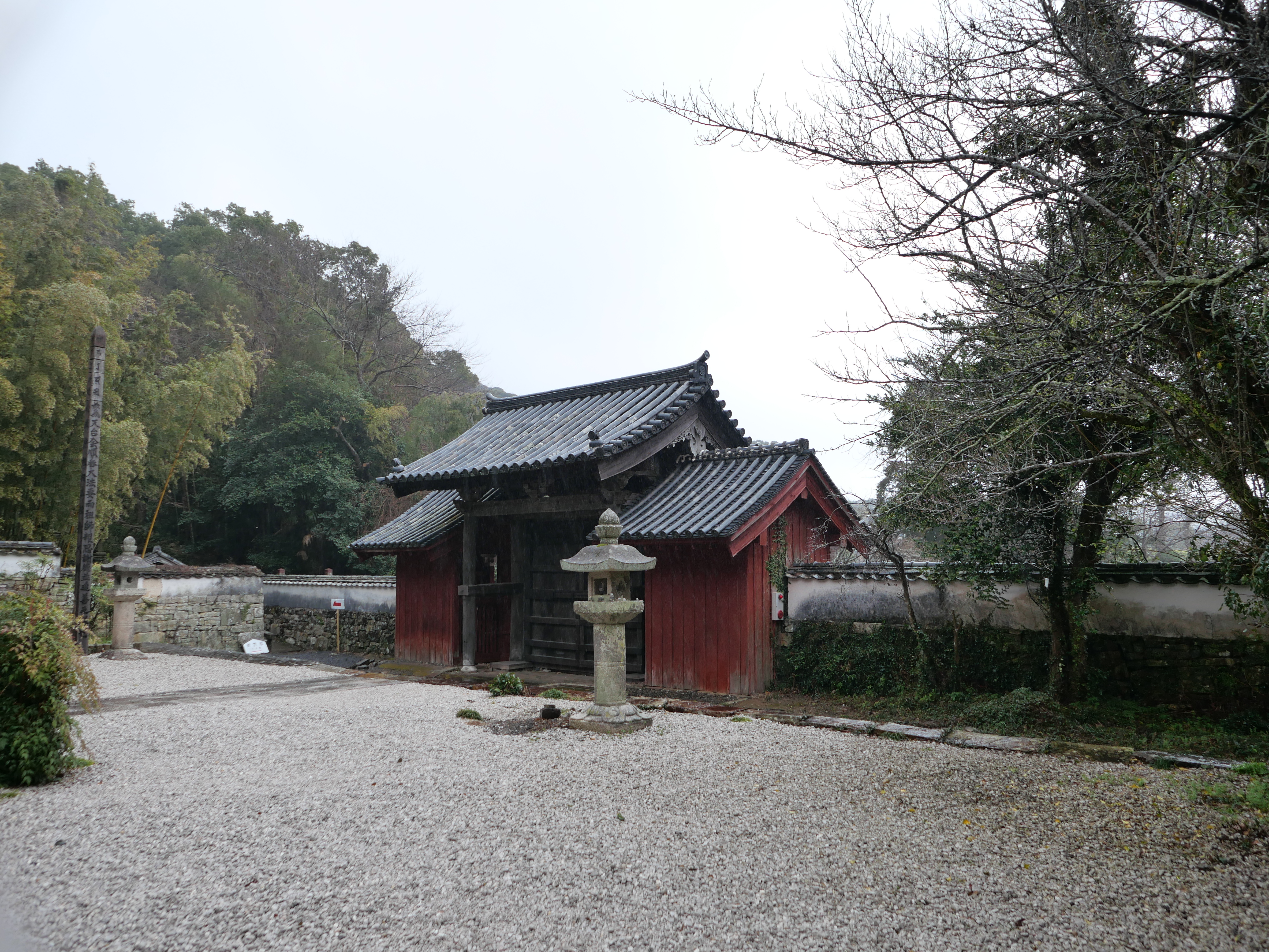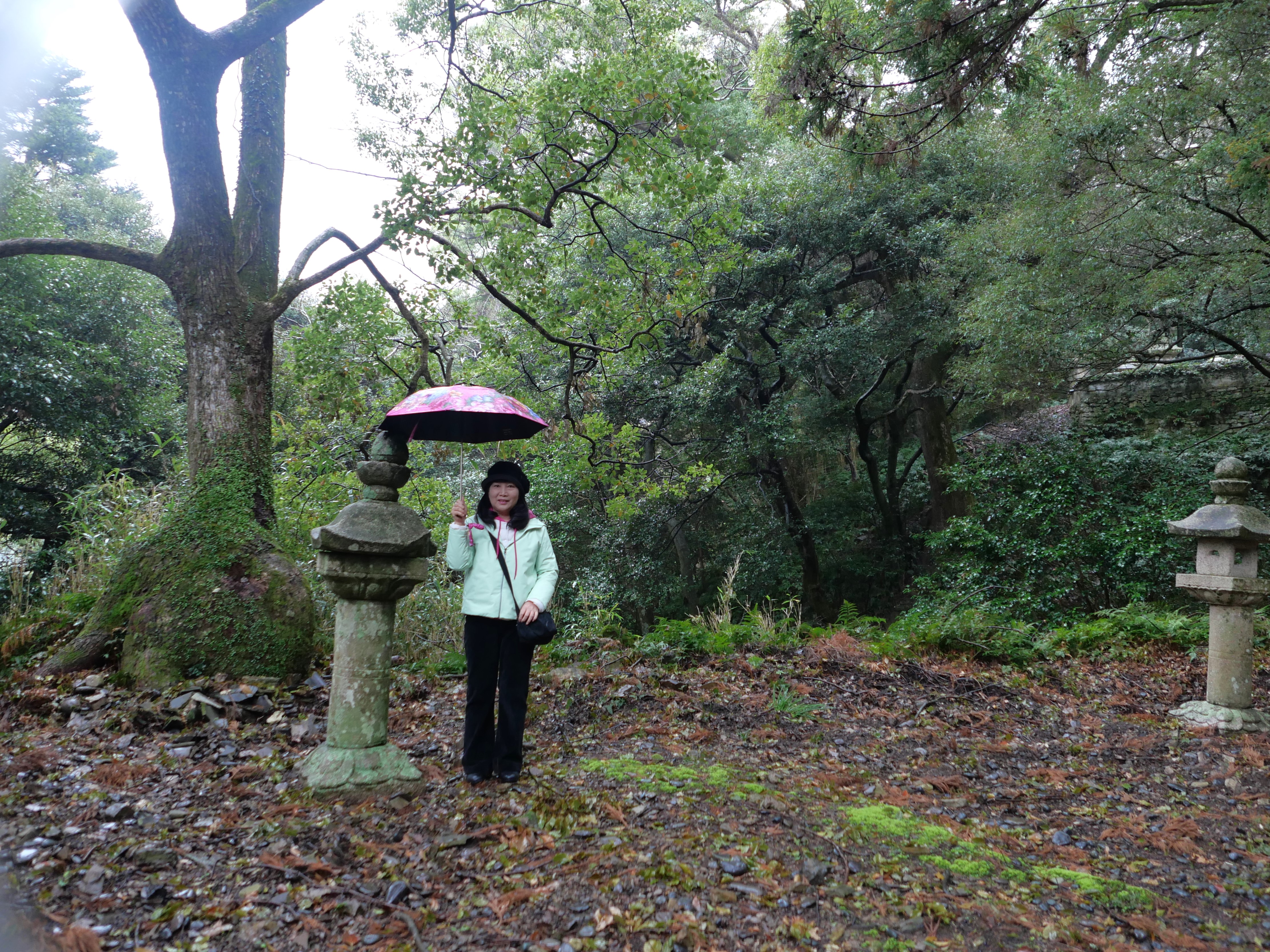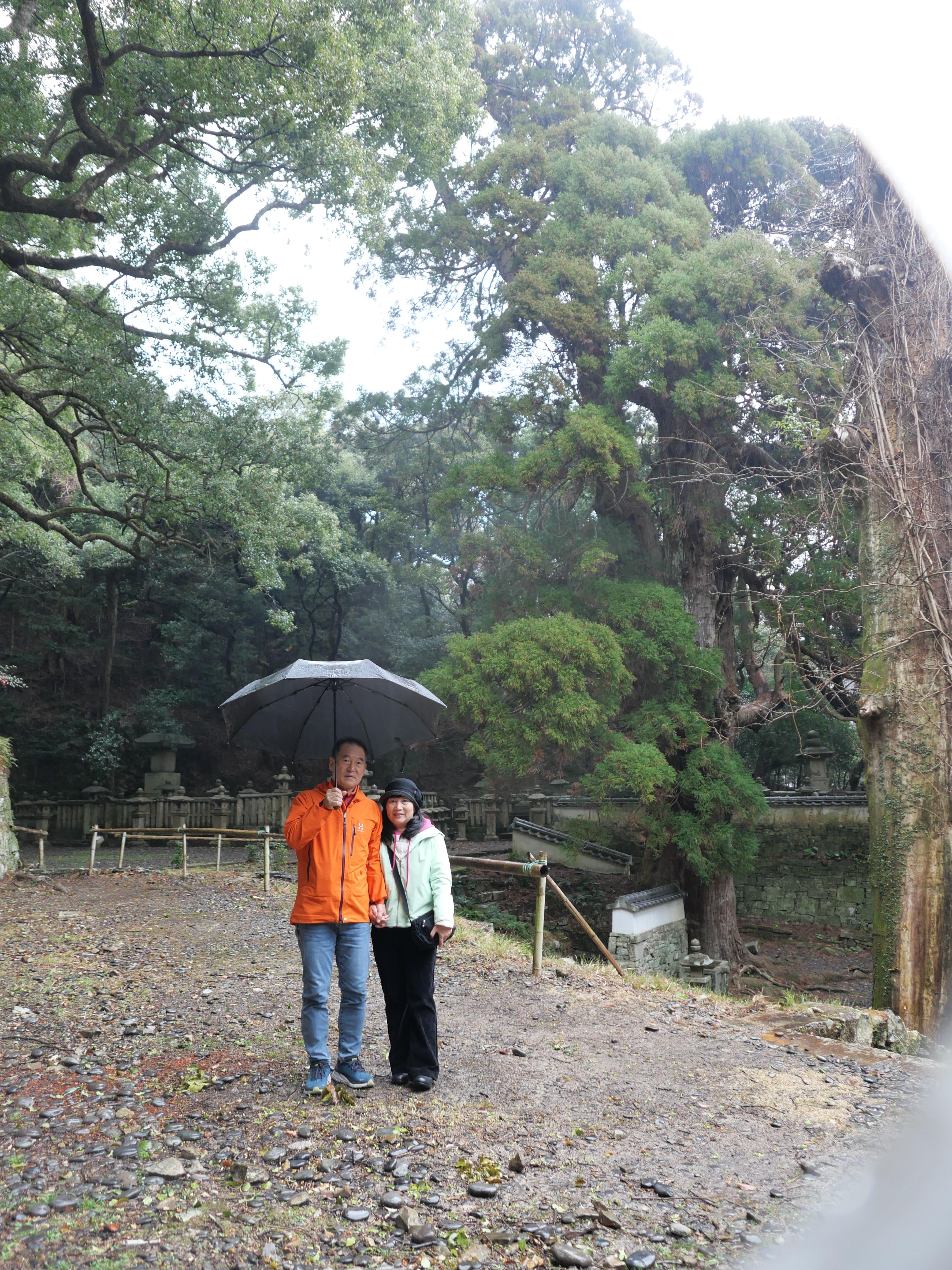 가문의 묘원으로 132개의 돌계단과 400년 넘은 삼나무 세그루가 볼만하다